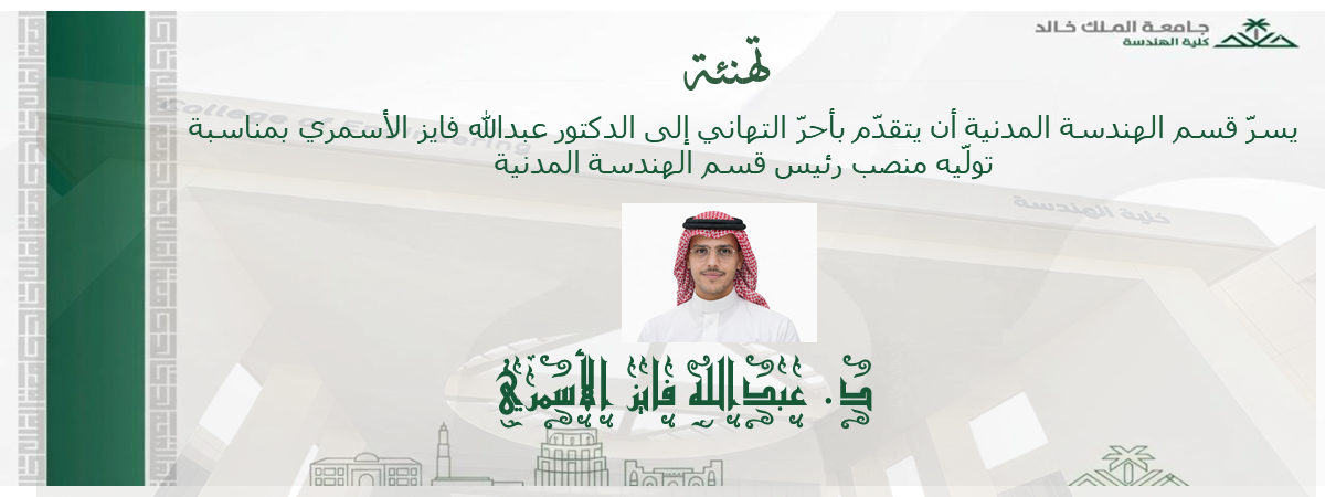 المزيد..يسرّ قسم الهندسة المدنية أن يتقدّم بأحرّ التهاني إلى الدكتور عبدالله…